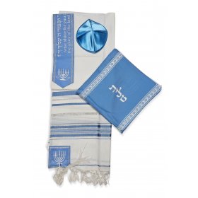 Acrylic Prayer Shawl Set with Menorah and Bible Words, Powder Blue and Silver – Ateret$42.54 -