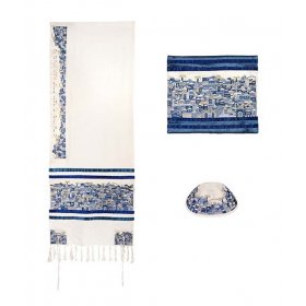 Embroidered Cotton Prayer Shawl Set, Jerusalem in Blue - Yair EmanuelChoice of 2 sizes$218.03 - $416.24FREE delivery -
