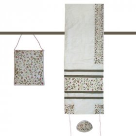 Embroidered Flowers on Polysilk White Tallisack Prayer Shawl Set - Yair Emanuel16" x 70"$135.42 -