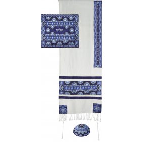 Blue Polysilk Prayer Shawl Set Embroidered Jerusalem Design - Yair Emanuel16" x 70"$135.42 -