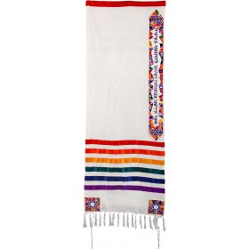 White Polysilk Prayer Shawl Set Embroidered Colorful Jerusalem - Yair Emanuel16" x 70"$135.42 -