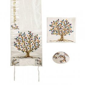 Multicolor Embroidered Polysilk Tree of Life Prayer Shawl Set - Yair EmanuelSize: 16" x 70"$137.67 -