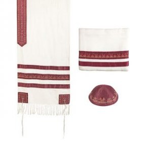 Prayer Shawl, Bag and Kippah with Embroidered Stripes, Maroon - Yair EmanuelSize: 20" x 75"$153.33 -