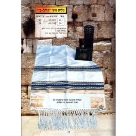 Acrylic Prayer Shawl Set with Menorah and Bible Words, Blue and Gold Stripes – Ateret$42.54 -